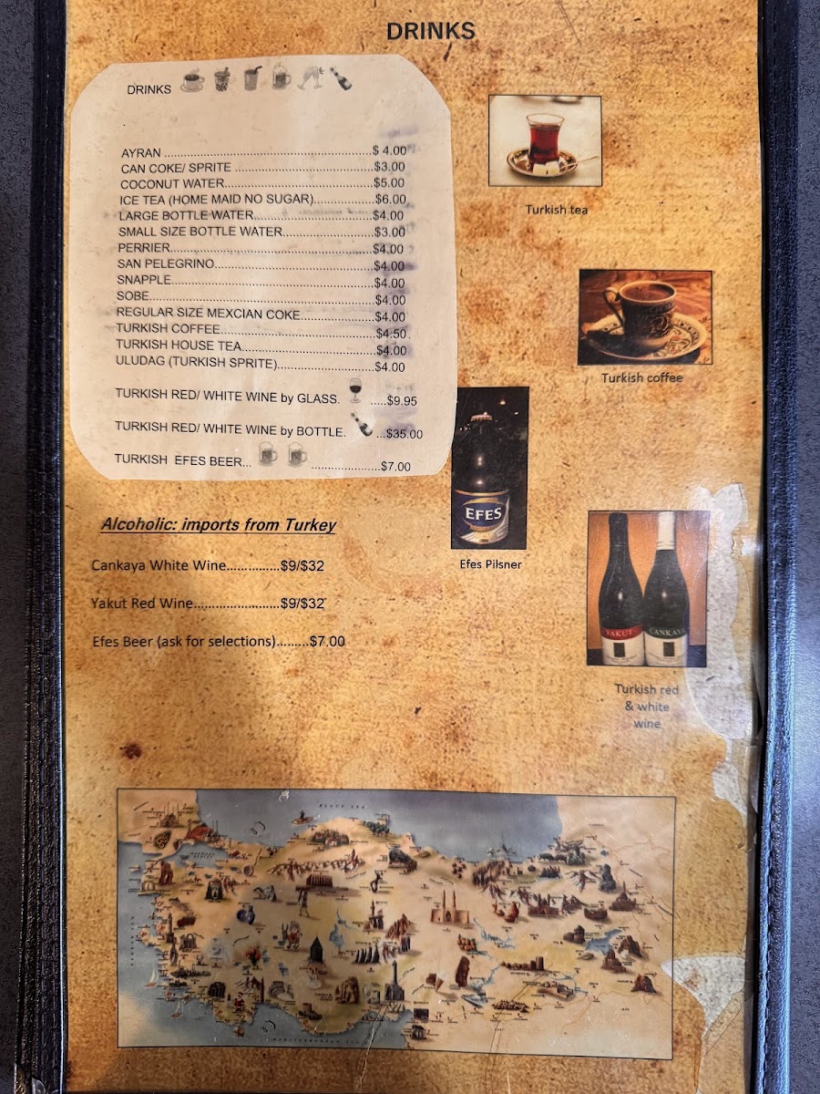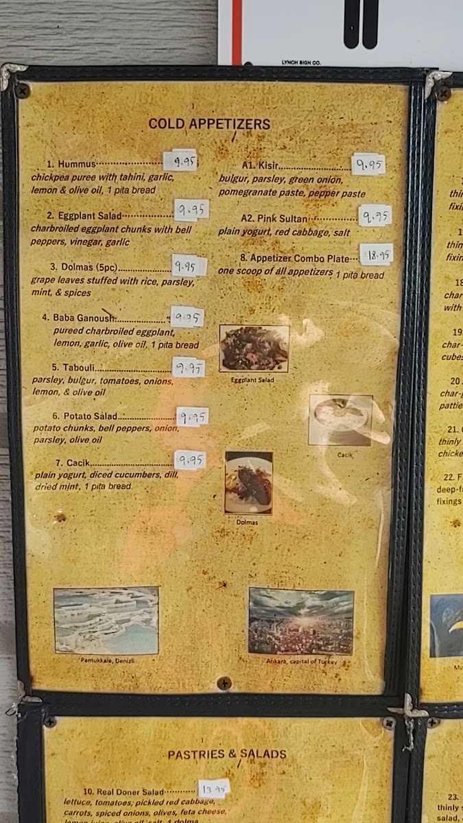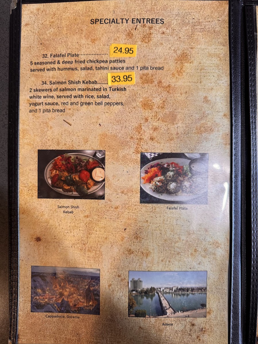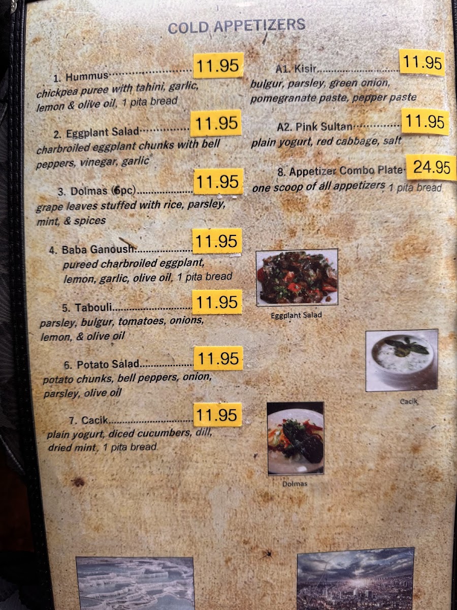 Starting with the appetizers, diners can enjoy a range of flavorful starters, such as Hummus, Eggplant Salad, and Dolma, all of which provide a perfect introduction to Turkish cuisine. For a more savory option, Baba Ganoush and Tabouli are also available, offering a fresh and rich mix of ingredients that complement any meal.